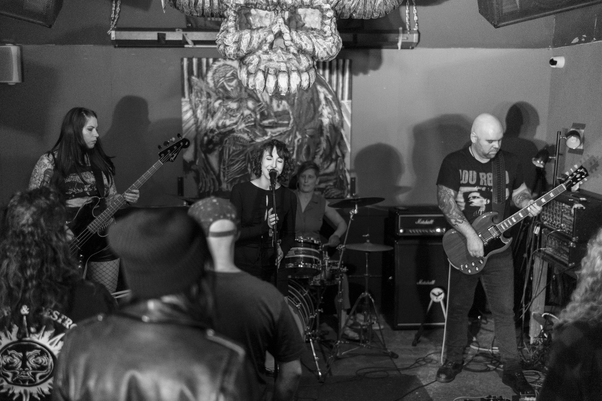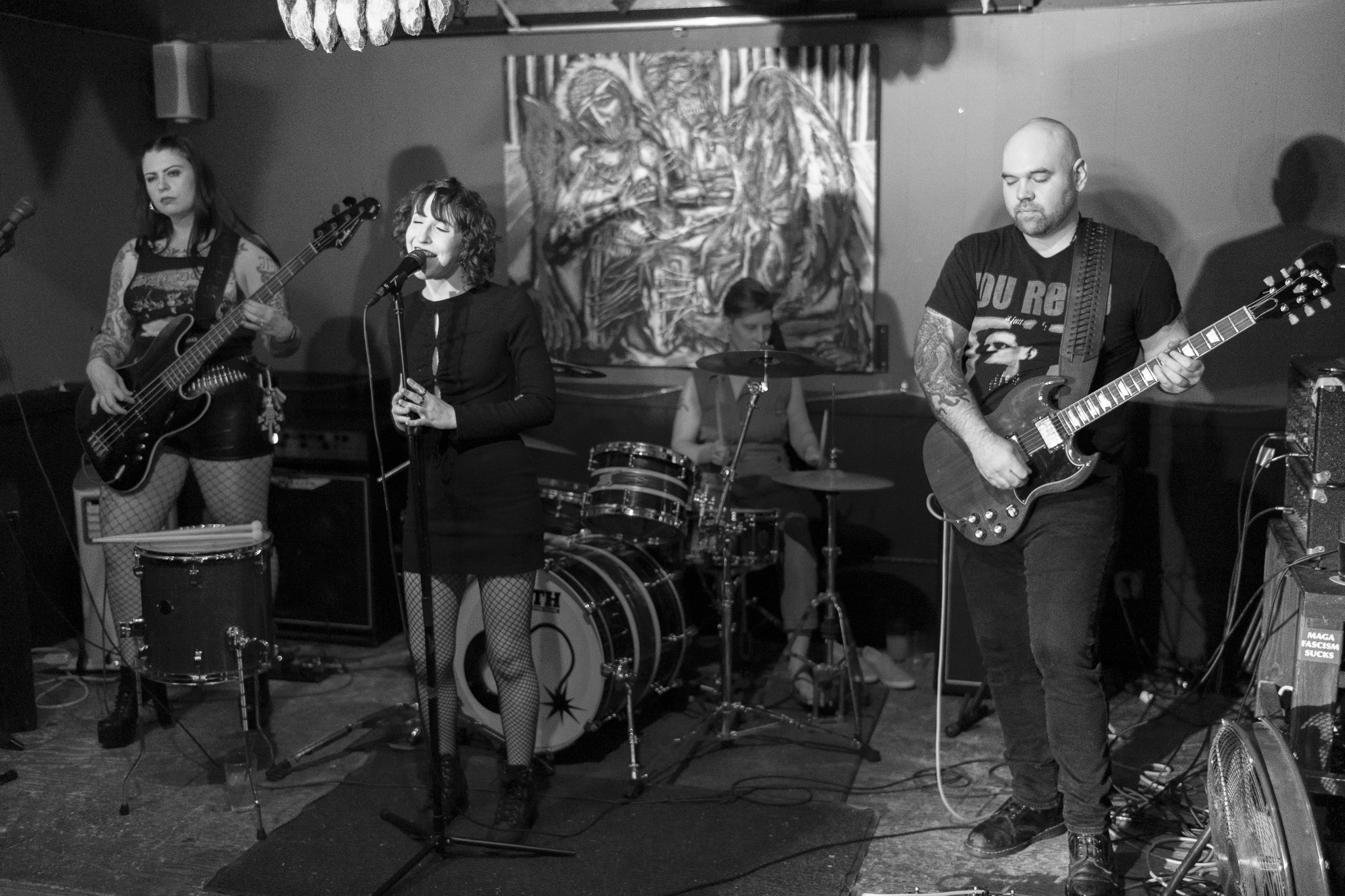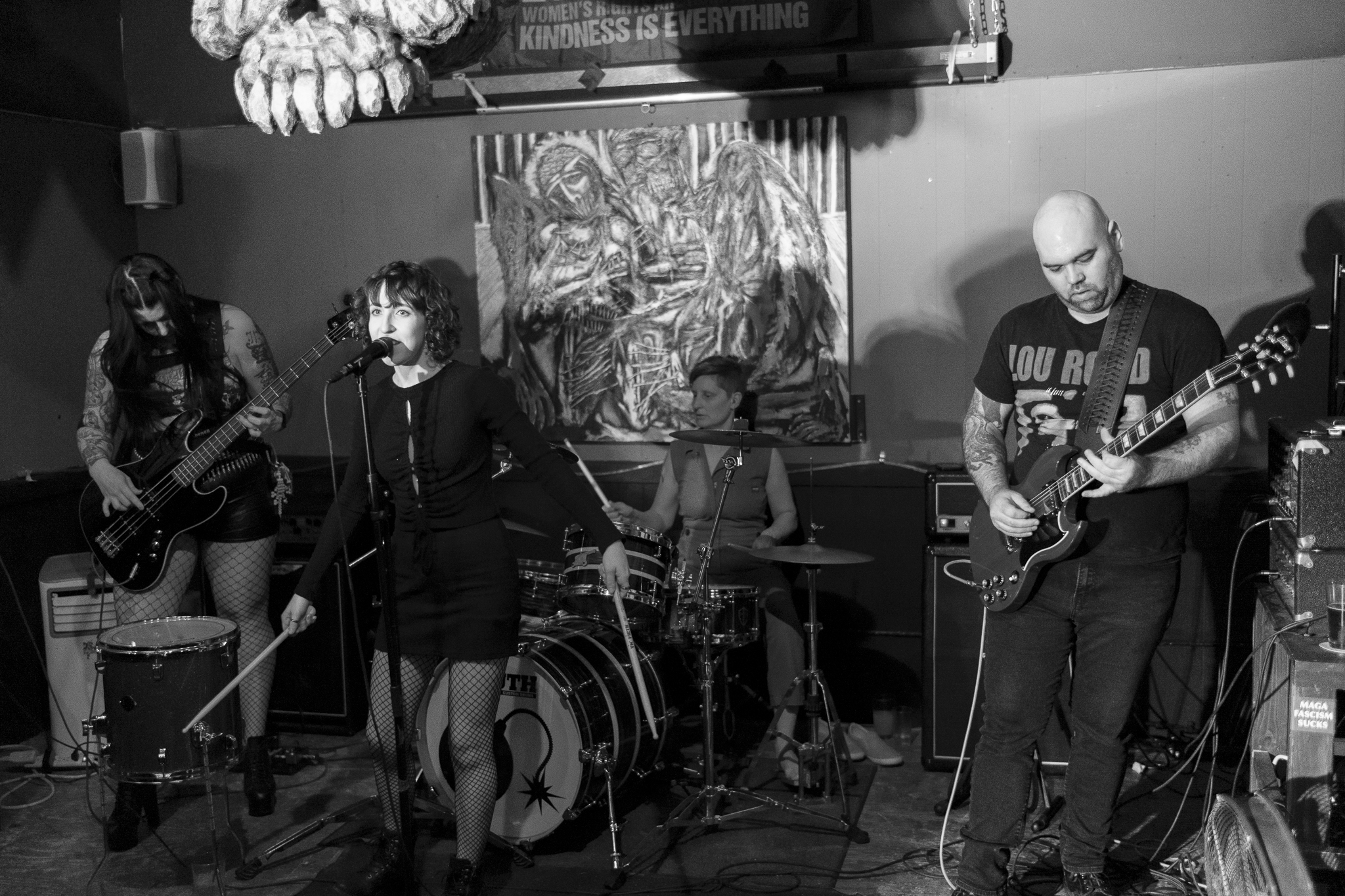 Bone Brothel is a femme-fronted indie-metal band with heavy punk and grunge influences. Informed by iconic acts such as Soundgarden, Black Sabbath, Nirvana, and The Pretty Reckless, they blend haunting melodies, guttural riffs, and ferocious vocals into a sound entirely their own. By fusing the heavy energy and raw emotion notable of the metal genre with distinctive lyrics and imaginative subject matter, Bone Brothel offers a new sonic experience that’s both visceral and intriguing. Based in Portland, Oregon, their members include Alexis Moore on bass, Shannon Selah on drums, Calvin Hart on lead guitar, and Gea John Marie on vocals.